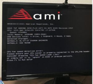 やっと立ち上がったと思ったら、CPUのファンのスピードが変だよ!のエラー。